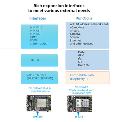 অনবোর্ড গিগাবিট ইথারনেট পোর্ট, আরজিএমআইআই, ইউএসবি 3.0/2.0, মিনি প্যাকেল, মিনি এইচডিএমআই, এমআইপিআই স্ক্রিন এবং এমআইপিআই ক্যামেরা এবং অন্যান্য পেরিফেরিয়াল ইন্টারফেসগুলি, 40 পিন অব্যবহৃত পিনগুলি, আরও বিকাশের প্রয়োজন মেটাতে সমৃদ্ধ সম্প্রসারণ ইন্টারফেসগুলি নিয়ে যায়!
