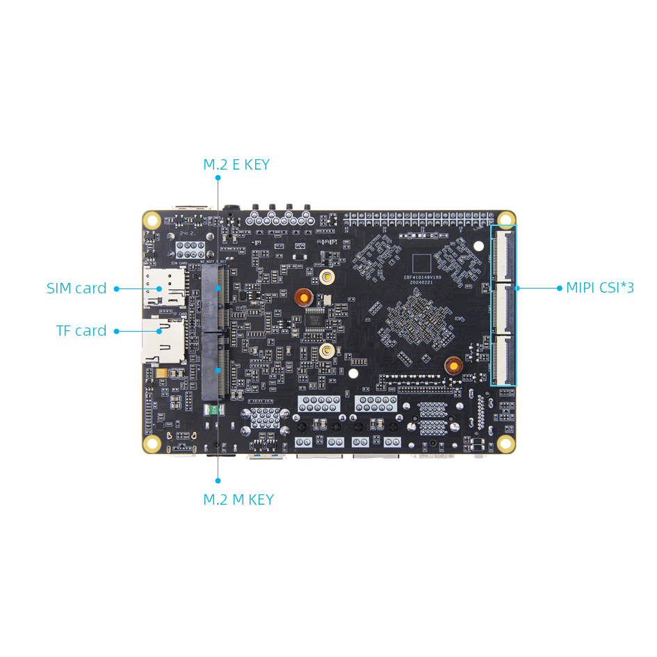 • মূল কনফিগারেশন: 16GB LPDDR5 RAM + 128GB eMMC, 6-চ্যানেল MIPI CSI ক্যামেরা ইন্টারফেস, 4-চ্যানেল MIPI-CSI ইন্টারফেস + HDMI 2.1 আউটপুট, ইন্টিগ্রেটেড হার্ডওয়্যার ভিডিও এনক্রিপশন মডিউল