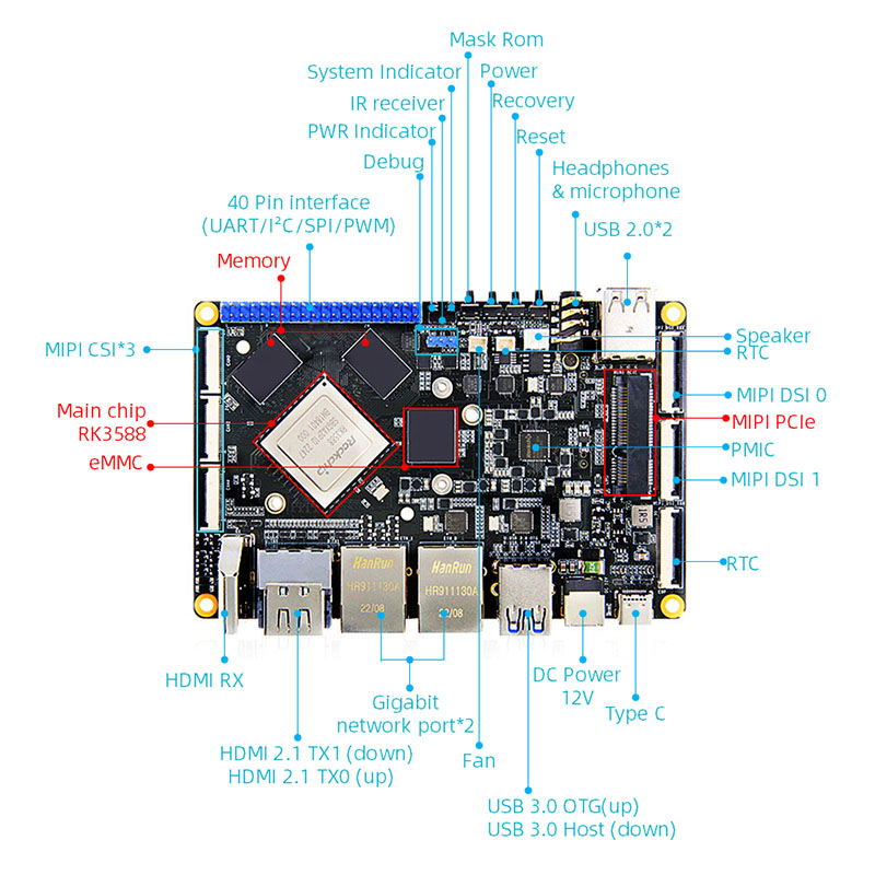 থিঙ্ককোর টেকনোলজি কোং, লিমিটেড এম্বেডড হার্ডওয়্যার গবেষণা এবং উন্নয়ন, নকশা, উত্পাদন এবং বিক্রয়কে কেন্দ্র করে একটি প্রযুক্তিগত দল। এই উচ্চ-পারফরম্যান্স রকচিপ আরকে 3588 বোর্ড সমস্ত ধরণের এআই পরিস্থিতিতে উপযুক্ত।